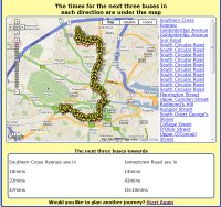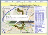 When you select the route you are interested in you are brought to a similar page that diplays the list of stops on that route in the sidebar of the map.